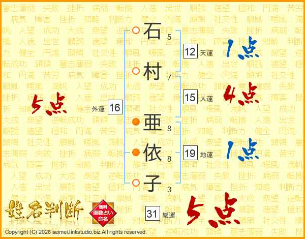 石村亜依子さんの総運は31画の5点!