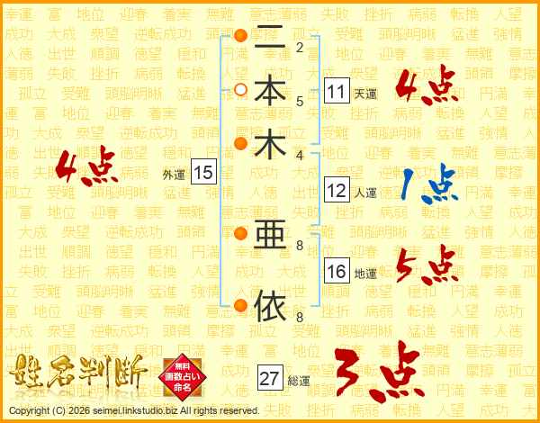 二本木亜依さんの外運は15画の4点!