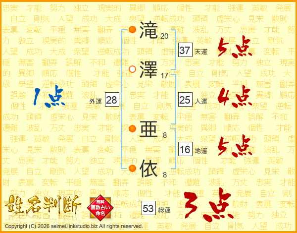 滝澤亜依さんの天運は37画の5点!