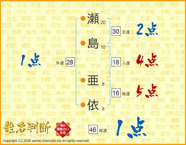 瀬島亜依さんの総運は46画の1点!