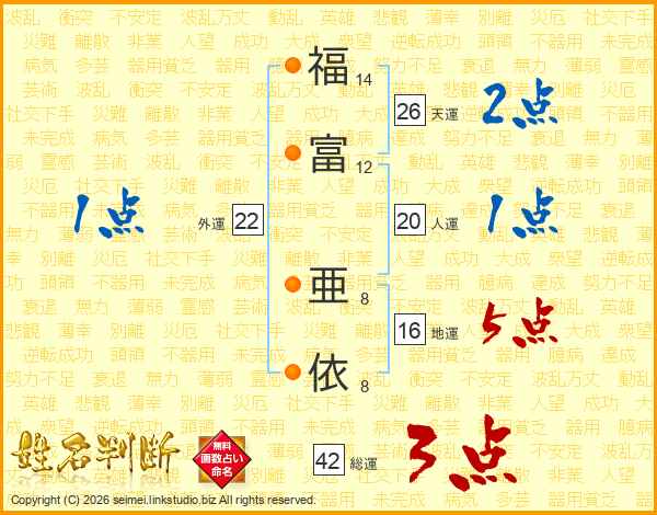 福富亜依さんの総運は42画の3点!