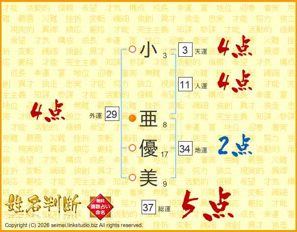 小亜優美さんの総運は37画の5点!