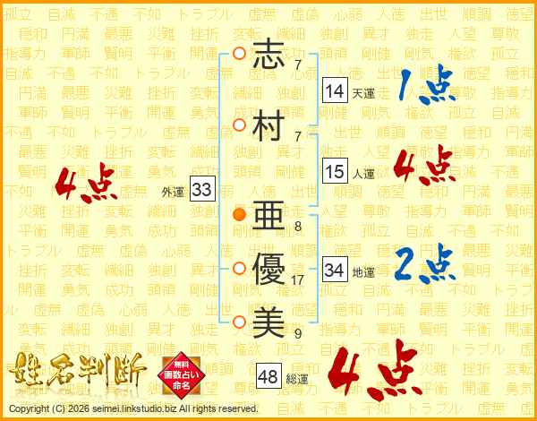 志村亜優美さんの総運は48画の4点!