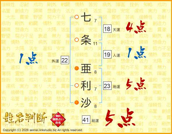 七条亜利沙さんの総運は41画の5点!
