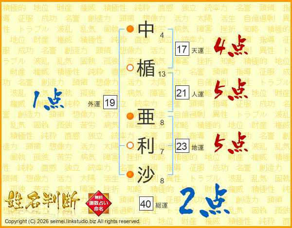 中楯亜利沙さんの総運は40画の2点!