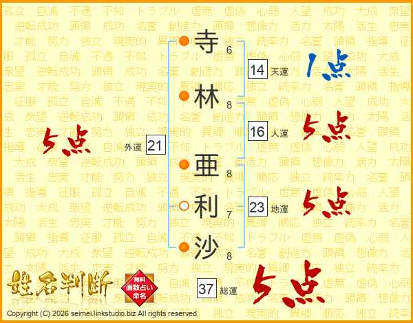 寺(6画)林(8画) 亜(8画)利(7画)沙(8画)