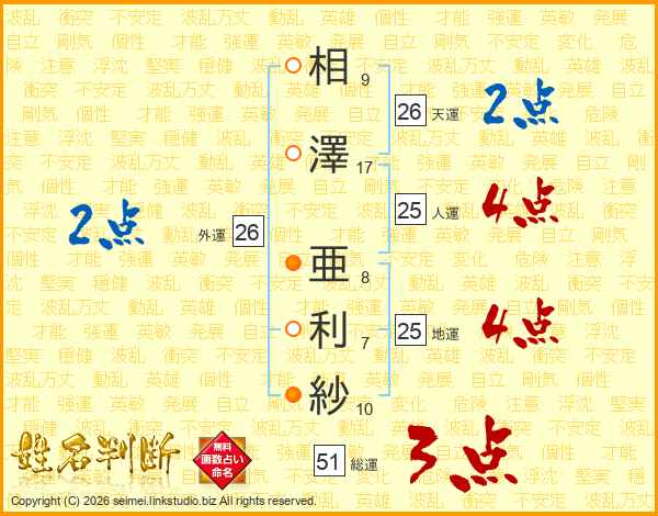 相澤亜利紗さんの天運は26画の2点!