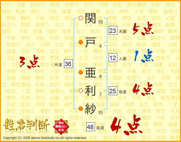 関戸亜利紗さんの総運は48画の4点!
