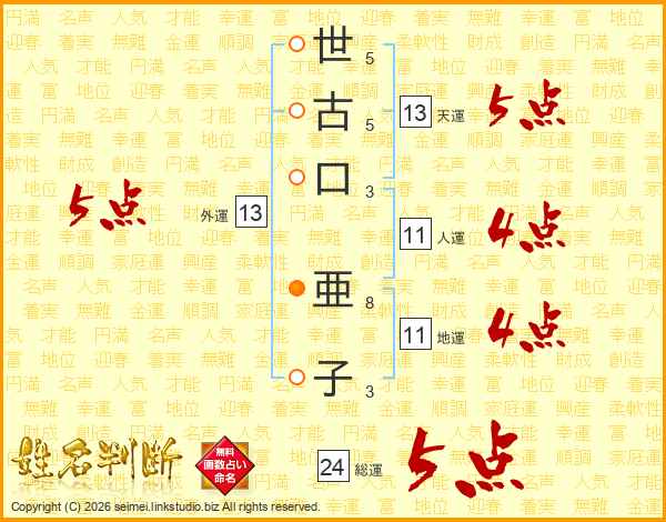 世古口亜子さんの外運は13画の5点!