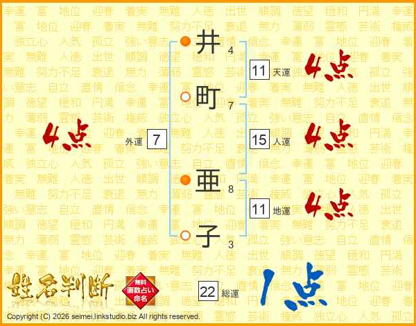 井(4画)町(7画) 亜(8画)子(3画)