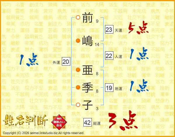 前嶋亜季子さんの総運は42画の3点!