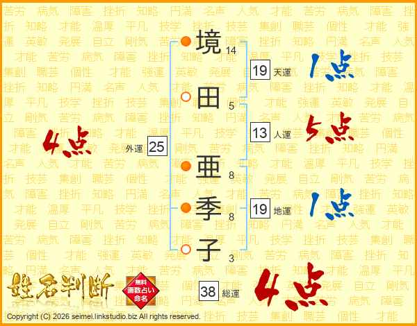 境田亜季子さんの総運は38画の4点!