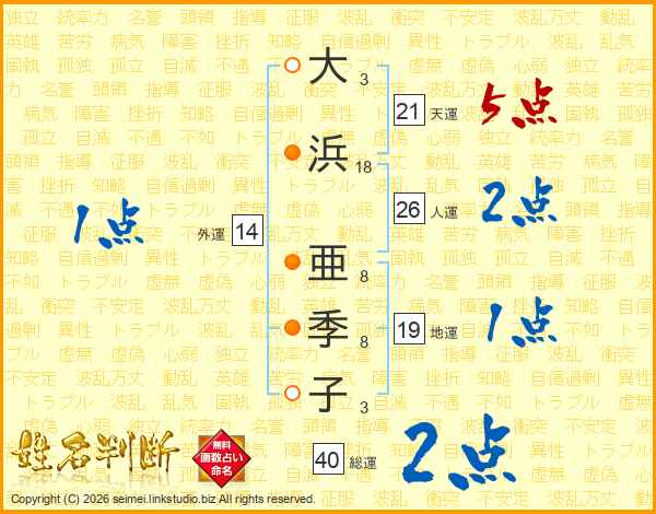 大浜亜季子さんの総運は40画の2点!