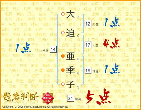 大迫亜季子さんの総運は31画の5点!