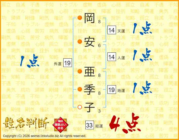 岡安亜季子さんの総運は33画の4点!
