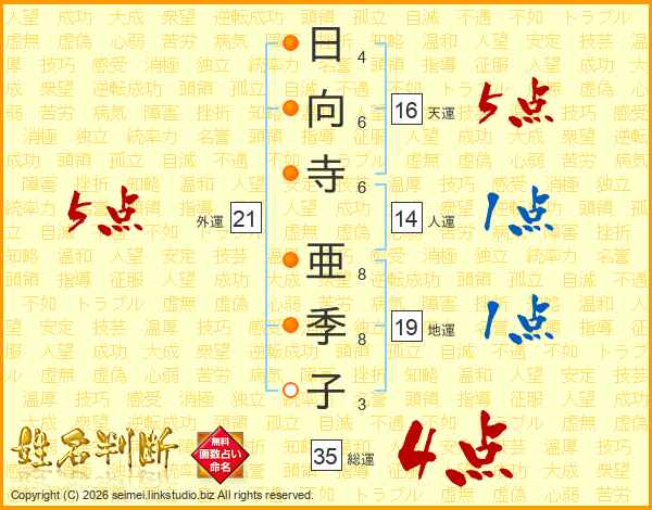 日向寺亜季子さんの外運は21画の5点!