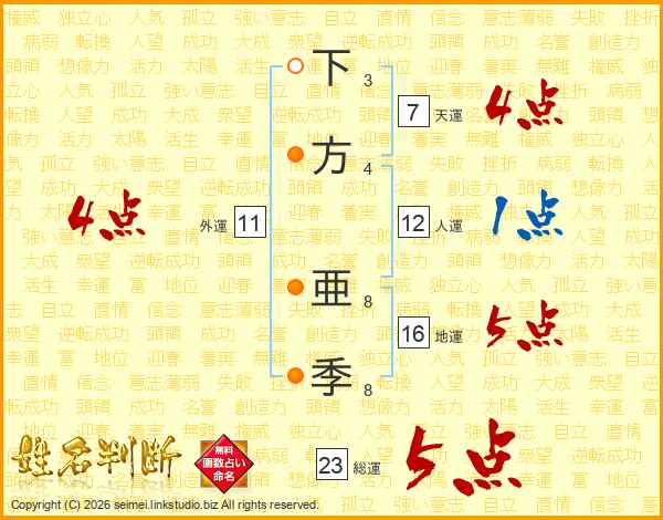 下方亜季さんの総運は23画の5点!