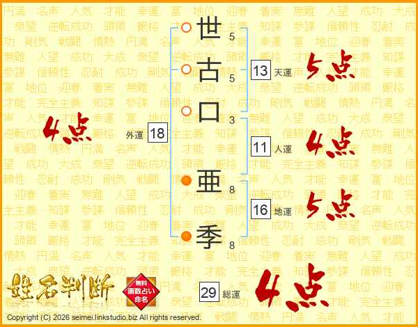 世古口亜季さんの総運は29画の4点!