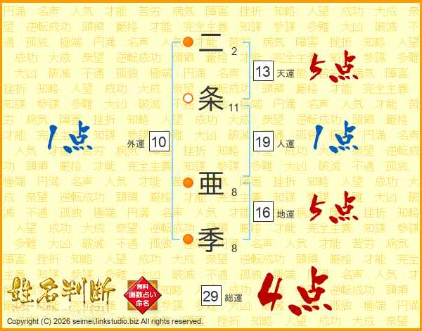 二条亜季さんの総運は29画の4点!