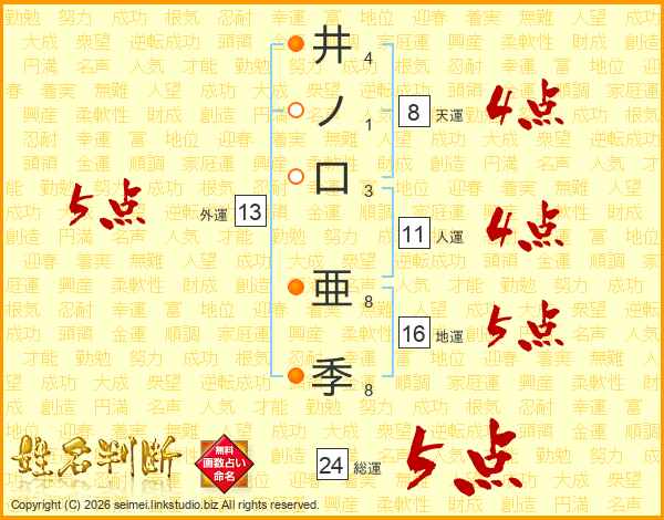 井ノ口亜季さんの外運は13画の5点!
