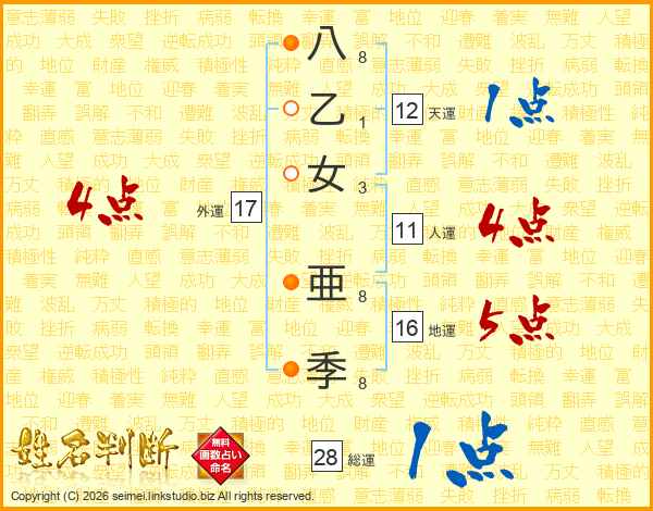 八(8画)乙(1画)女(3画) 亜(8画)季(8画)
