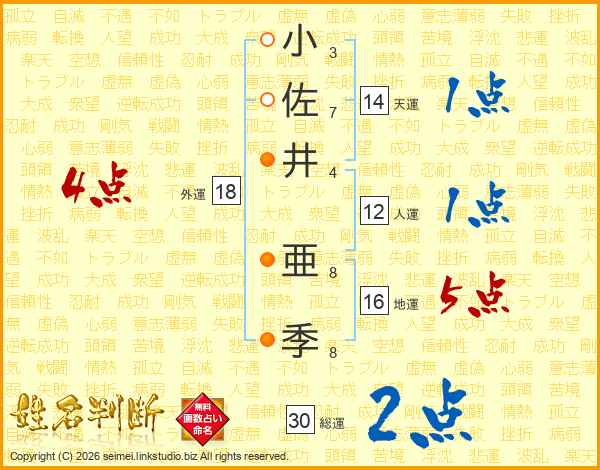 小佐井亜季さんの総運は30画の2点!