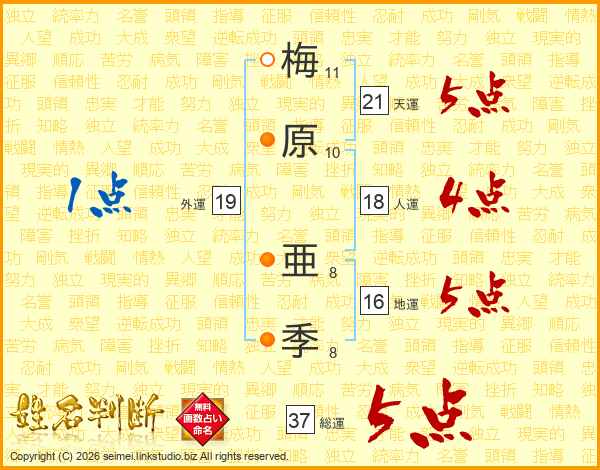 梅原亜季さんの総運は37画の5点!
