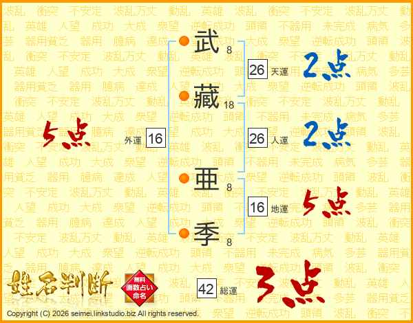 武(8画)藏(18画) 亜(8画)季(8画)