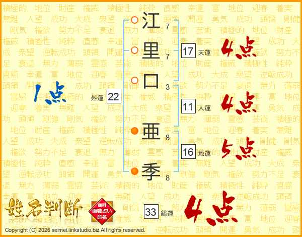 江里口亜季さんの総運は33画の4点!