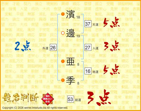 濱(18画)邊(19画) 亜(8画)季(8画)