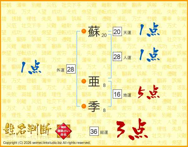 蘇亜季さんの天運は20画の1点!