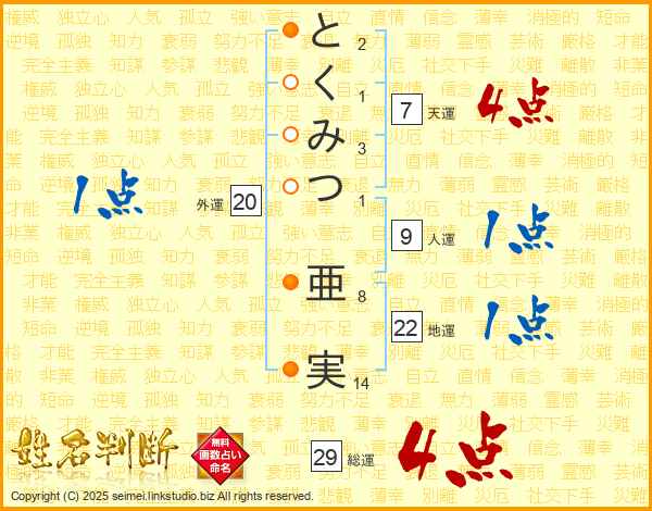 と(2画)く(1画)み(3画)つ(1画) 亜(8画)実(14画)