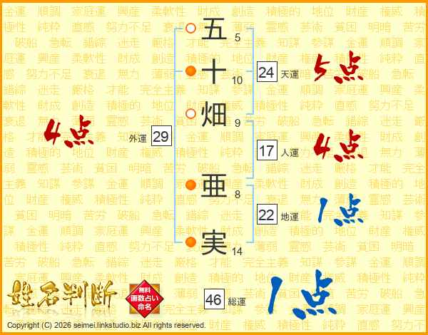 五十畑亜実さんの総運は46画の1点!