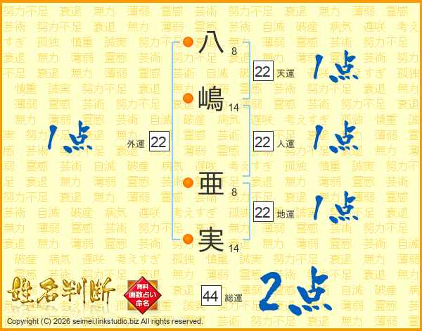 八嶋亜実さんの総運は44画の2点!