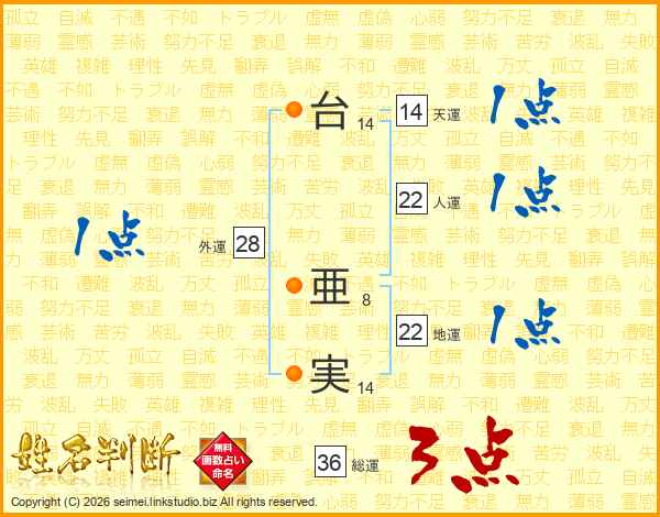 台亜実さんの天運は14画の1点!