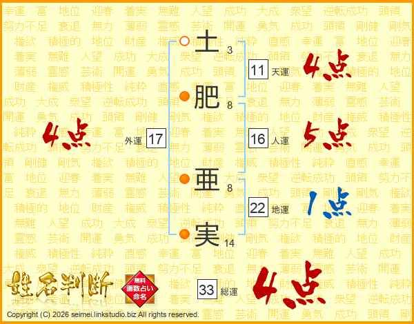 土肥亜実さんの総運は33画の4点!