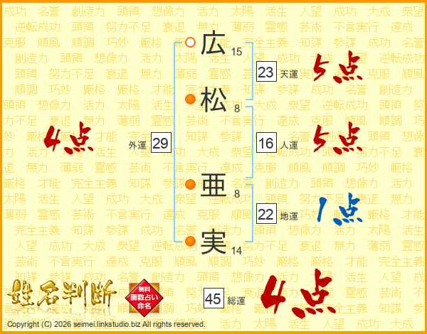 広松亜実さんの総運は45画の4点!