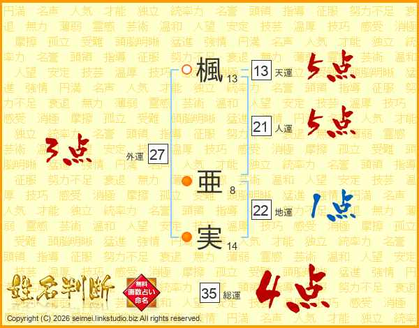 楓亜実さんの総運は35画の4点!