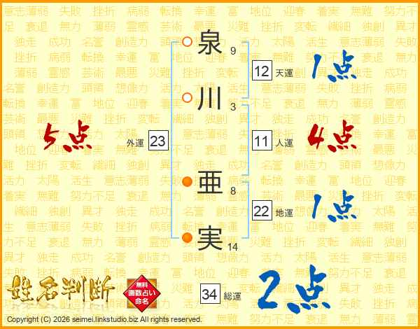 泉川亜実さんの総運は34画の2点!