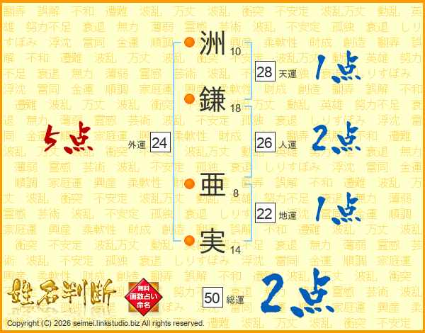 洲鎌亜実さんの外運は24画の5点!