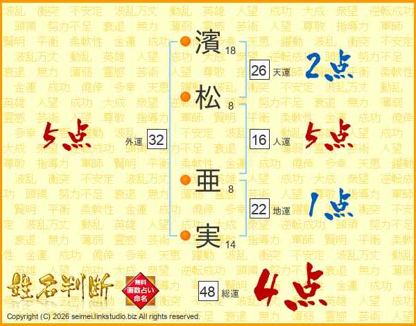 濱(18画)松(8画) 亜(8画)実(14画)