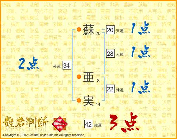蘇亜実さんの総運は42画の3点!