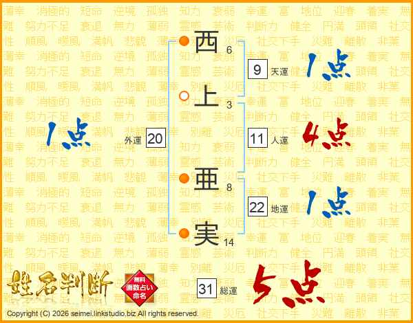 西上亜実さんの総運は31画の5点!