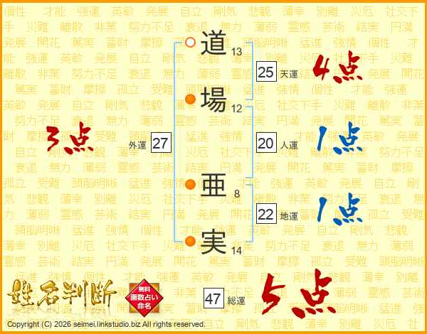 道場亜実さんの総運は47画の5点!