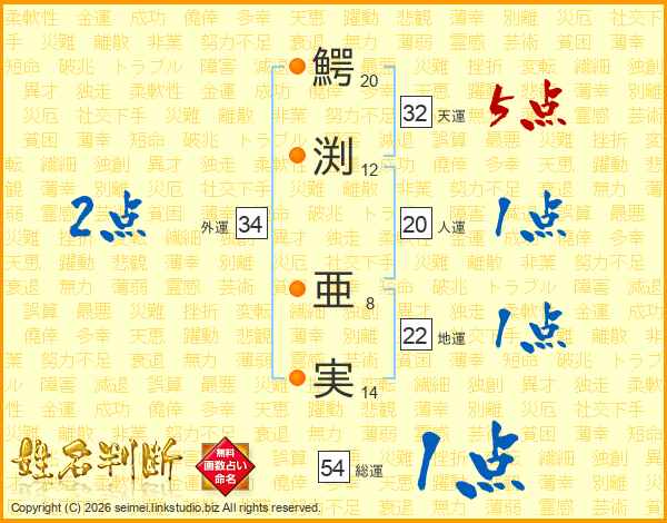 鰐渕亜実さんの総運は54画の1点!