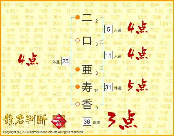 二口亜寿香さんの総運は36画の3点!