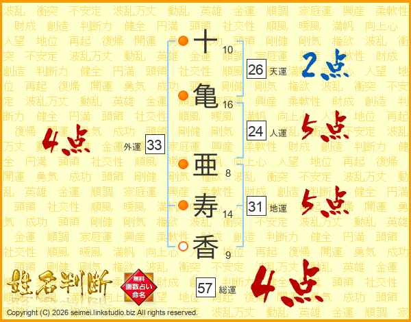 十亀亜寿香さんの外運は33画の4点!