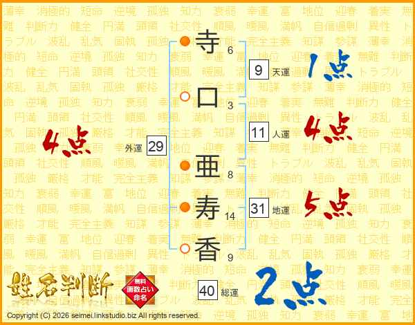 寺口亜寿香さんの総運は40画の2点!