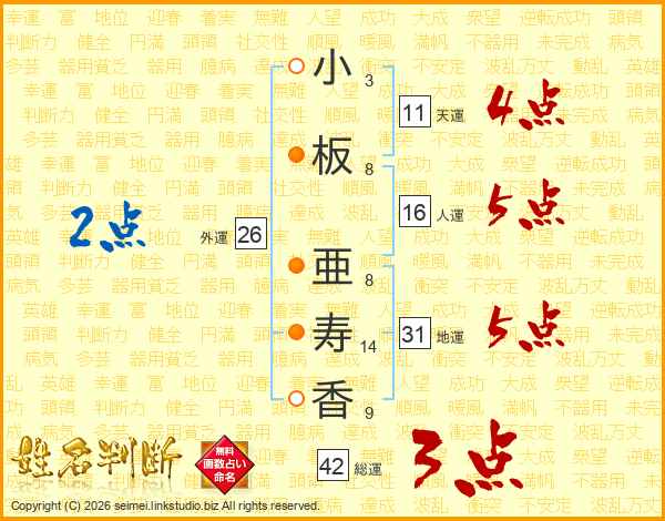 小板亜寿香さんの地運は31画の5点!