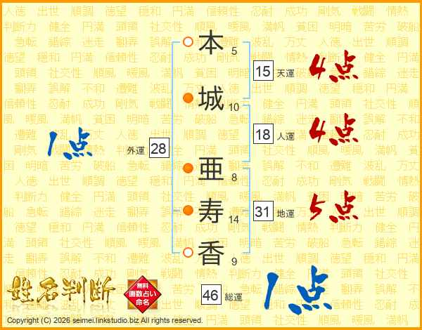 本城亜寿香さんの地運は31画の5点!